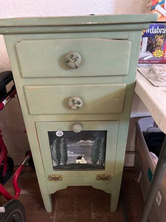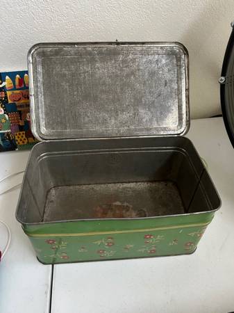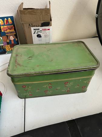 Vintage shelf $75 Storage tins $25 Beverage cart $300 Cedar chest $125
