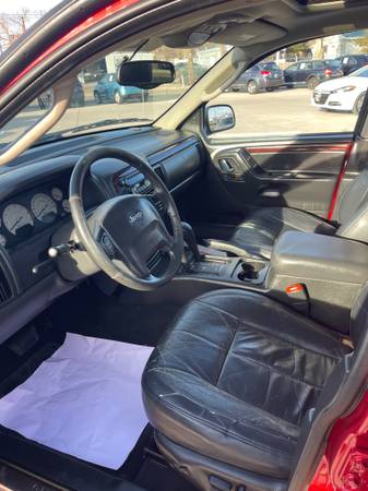 Trim: Limited suv Mileage: 165k miles Exterior Color: Inferno Red Tinted Pearl Interior Color: Dark Slate Gray Engine: 4.7L 8 Cylinders Drive: 4wd Transmission: Automatic VIN: 1J4GW58N64C410682 Seller Comments: Peace of mind comes standard with our 2004 Jeep Grand Cherokee Limited 4WD in Inferno Red.Powered by a 4.7 Liter V8 that offers 235hp connected to a 5 Speed Automatic transmission.This Four Wheel Drive Limited provides nearly 20mpg on the highway along with impressive pulling power or towing performance when needed.The exterior is complemented by fog lamps, bright wheels, rear privacy glass, and a roof rack. Not only is this Limited pleasing to look at, but it is also comfortable to drive! You get to enjoy amenities such as keyless entry, cruise control on the leather-wrapped steering wheel, dual-zone automatic climate control, a premium AM/FM/CD sound system, power everything and more! Take a look at our pictures and check out all the extras! Throw your gear in the back, find your sweet spot in the power-adjustable heated leather driver seat with memory, open up the sunroof, and head on out! Safety features from Jeep are on-board this Jeep such as ABS, a fleet of airbags, and rear child safety locks to protect you and your crew.Our Grand Cherokee Limited is a rugged-looking SUV, fit for a daily driver or having some fun! You owe it to yourself to take this one for a ride! Save this Page and Call for Availability.We Know You Will Enjoy Your Test Drive Towards Ownership!